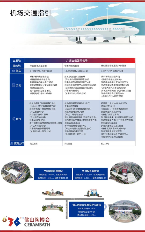 展期如何能夠快速抵達三展館,我們已經(jīng)安排好了佛山陶博會免費穿梭巴士,三展館之間自由免費穿梭。同時也整理好了交通攻略,記得下載保存哦!