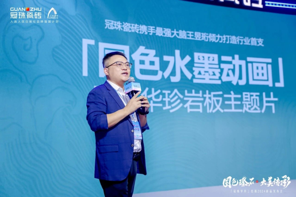 鄧總開場致辭表示,中國高端消費市場規模日益壯大,設計感、文化感、個性化、自然共生等逐漸成為新消費訴求。冠珠瓷磚通過深挖產品的文化內核,攜手中國色彩專家郭浩溯源正統國色,將產品設計與國色美學融合,推出冠珠華珍巖板2024新品,為高端大宅提供臻品家裝解決方案,以硬核品質將產品「大美」呈現到千家萬戶,可以更好地滿足國人對品質人居的追求,也為“中國美成為世界美”的理想貢獻力量。
